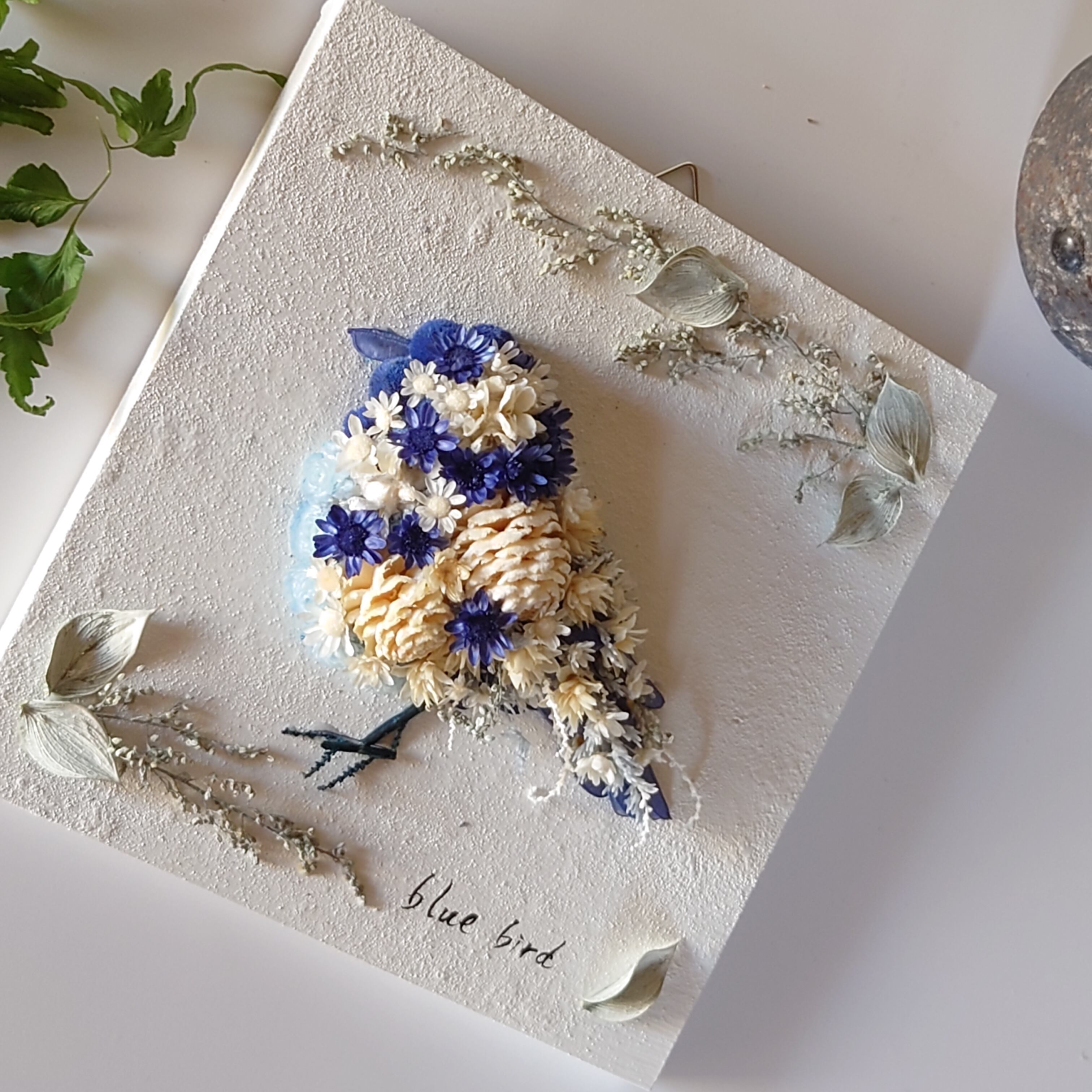 フラワーアートボード・幸せを呼ぶ青い鳥|Nā pua 〜植物雑貨クリエイター〜