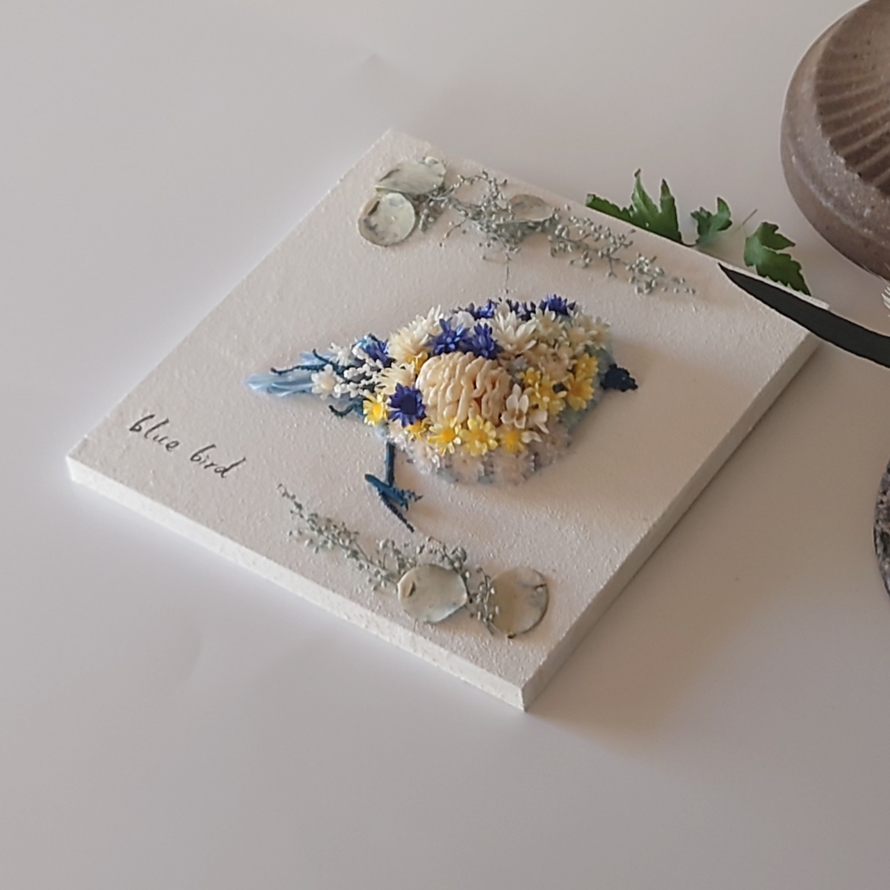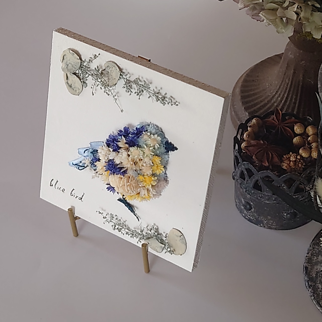 フラワーアートボード・幸せを呼ぶ青い鳥g|Nā pua 〜植物雑貨クリエイター〜
