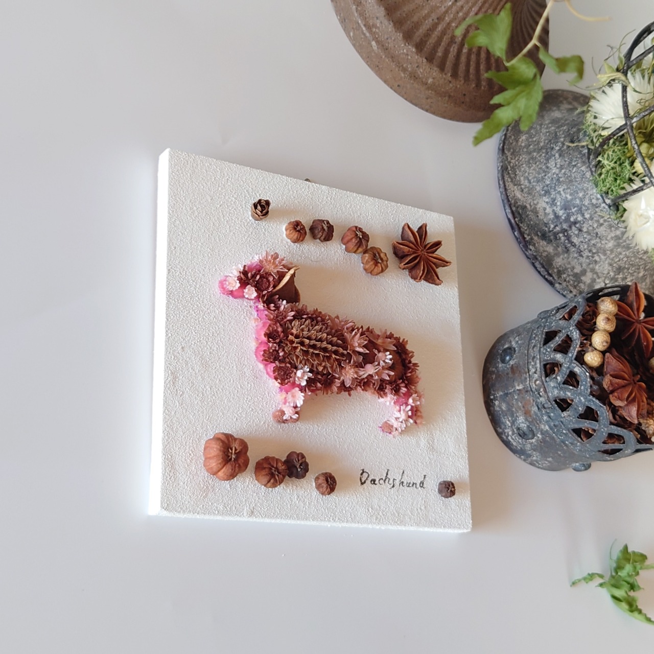フラワーアートボード・ダックスフントp|Nā pua 〜植物雑貨クリエイター〜