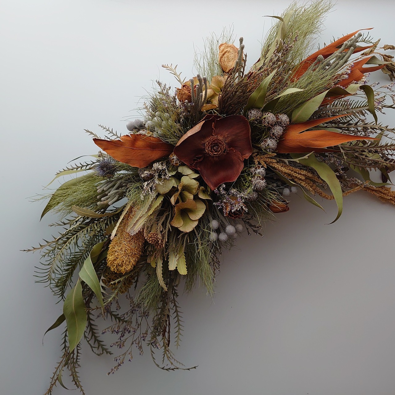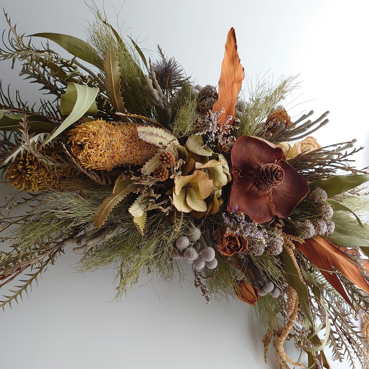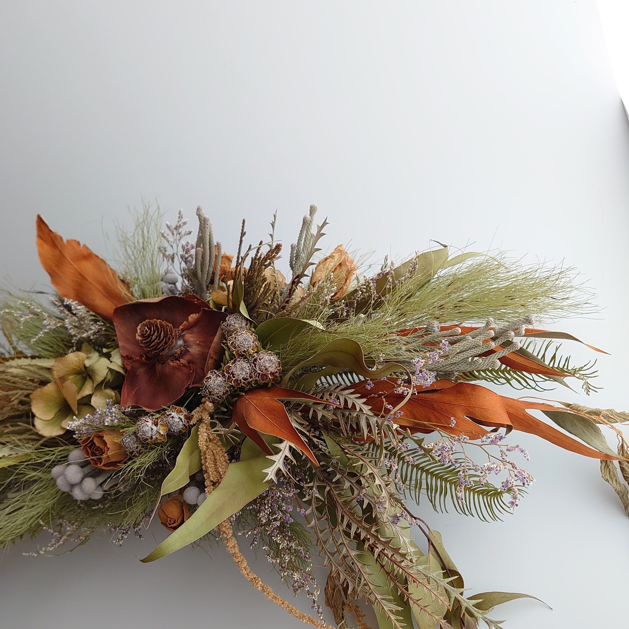 花…アジサイ、エリンジューム、ブルーファンタジー、ブルニア、ジェイドパール、バンクシア、ココフラワーなど